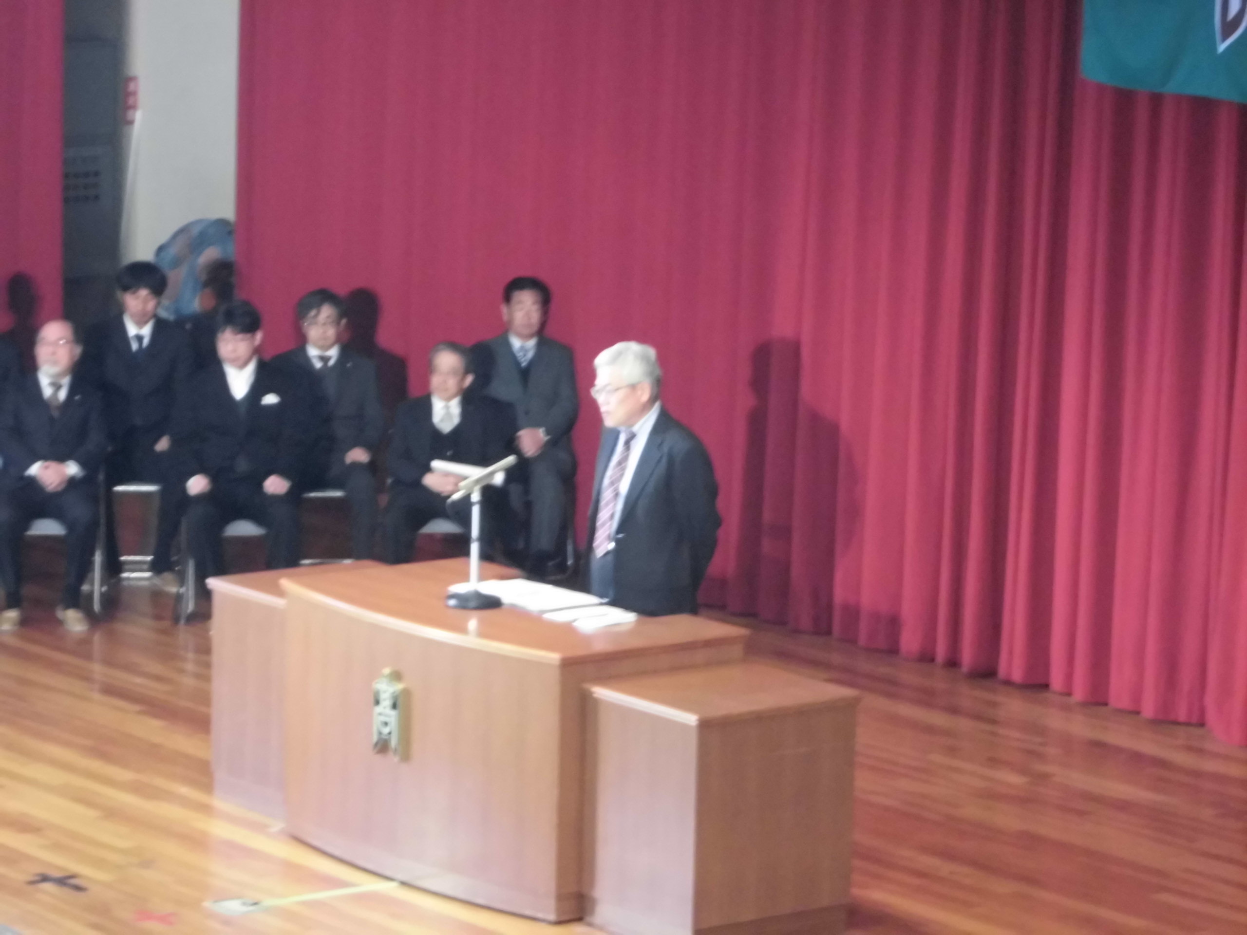 開式の辞に続き、同窓会を代表して 清水福和 副会長 より歓迎の挨拶が述べられました。 続いて、土本幹根 校長 から卒業生への励ましの言葉が贈られ、社会へ羽ばたく皆さんの背中を温かく押すメッセージとなりました。